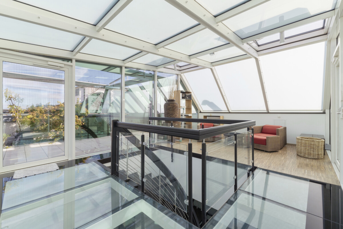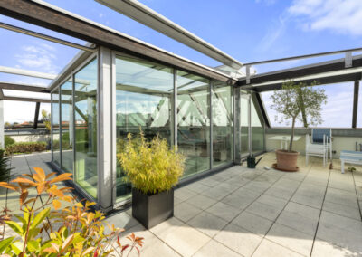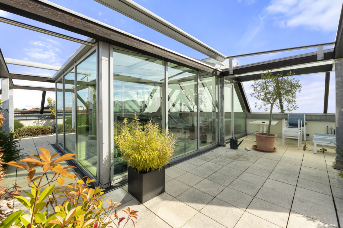 • Dachterrasse: ca. 100 m² mit Wintergarten, elektrischen Sonnensegeln und Platz für Whirlpool