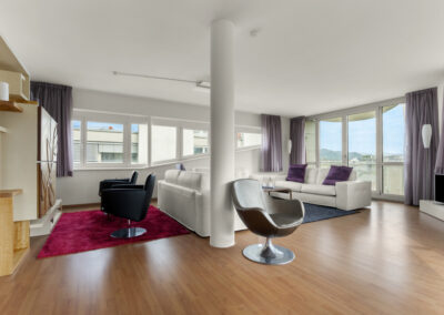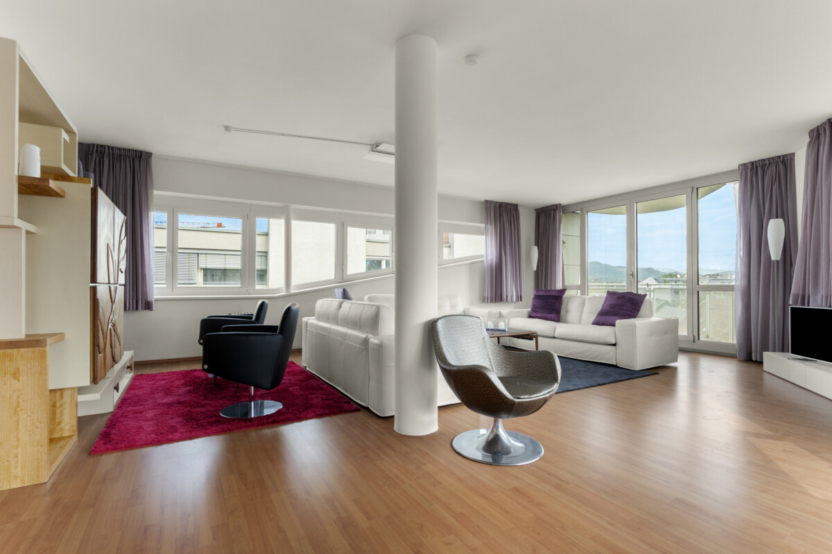 Schon beim Betreten dieser Wohnung wird klar: Hier wurde mit Liebe zum Detail geplant und eingerichtet. Ein sehr großzügiger, offener Eingangsbereich empfängt Sie und bietet Platz für Garderobe und Stauraum. Der Wohn-/Essbereich mit rund 51 m² bildet das Herzstück der Wohnung – lichtdurchflutet, stilvoll eingerichtet und mit direktem Zugang zum Balkon, von dem Sie eine wunderschöne Aussicht genießen können.